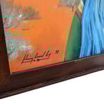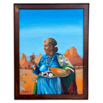 Large painted portrait of a Native American woman with desert backdrop. Measures over 43" tall framed (39" sight).