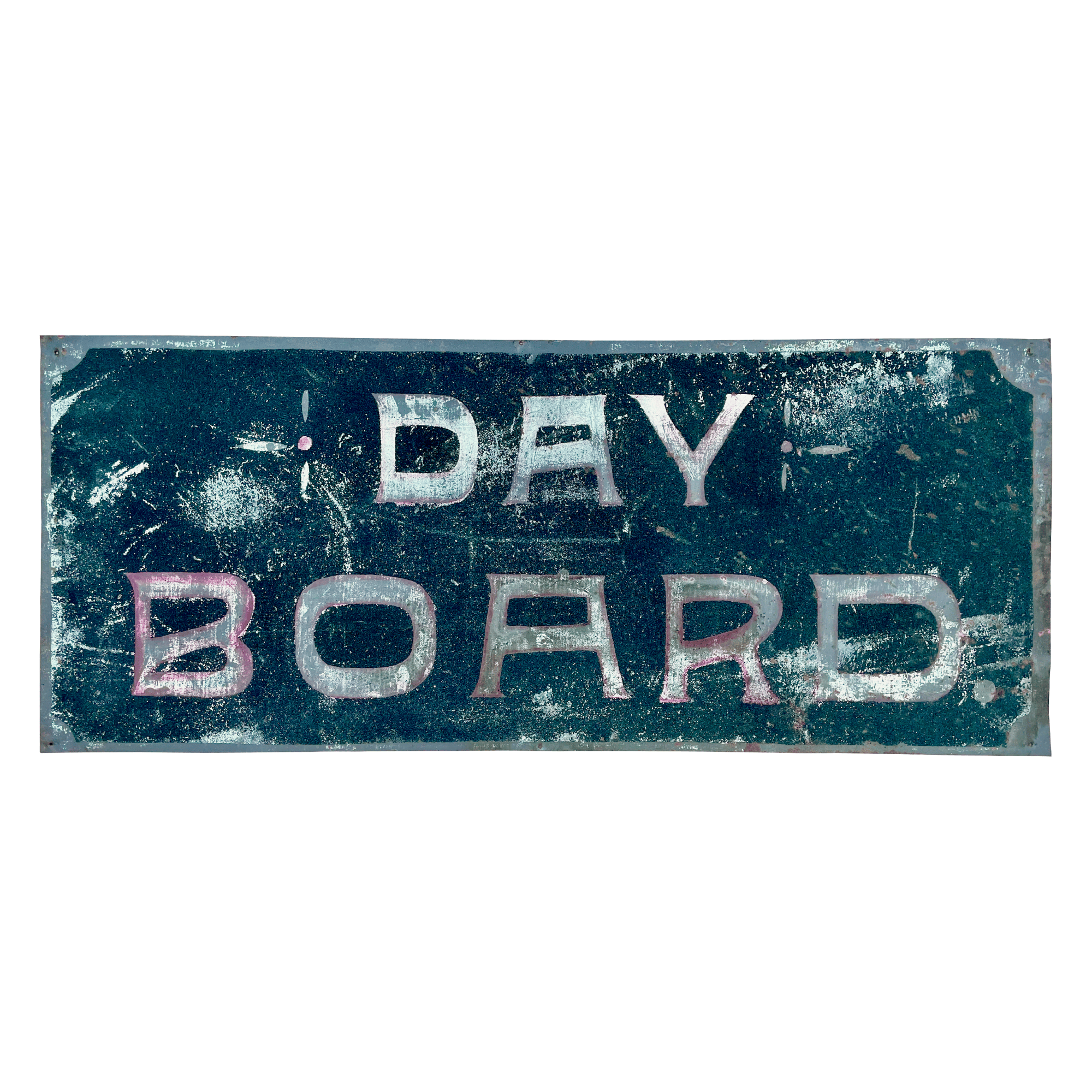 Smaltz on tin, likely advertising a train ticketing entrance for day passengers. Measures about 30" wide
